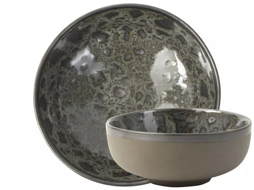 Elk stuk in dit servies is met de hand vervaardigd door vakmensen die aandacht besteden aan elk detail. De natuurlijke tekening en de subtiele groen-/ grijstinten op de kommen weerspiegelen de rust en puurheid van de natuur. De set bestaat uit 2 kommen.